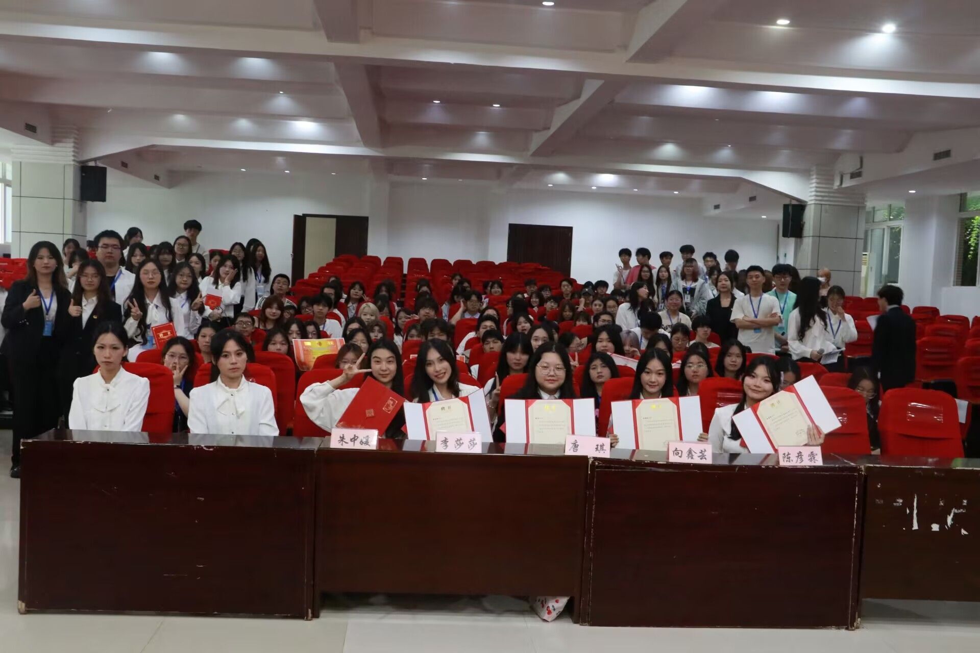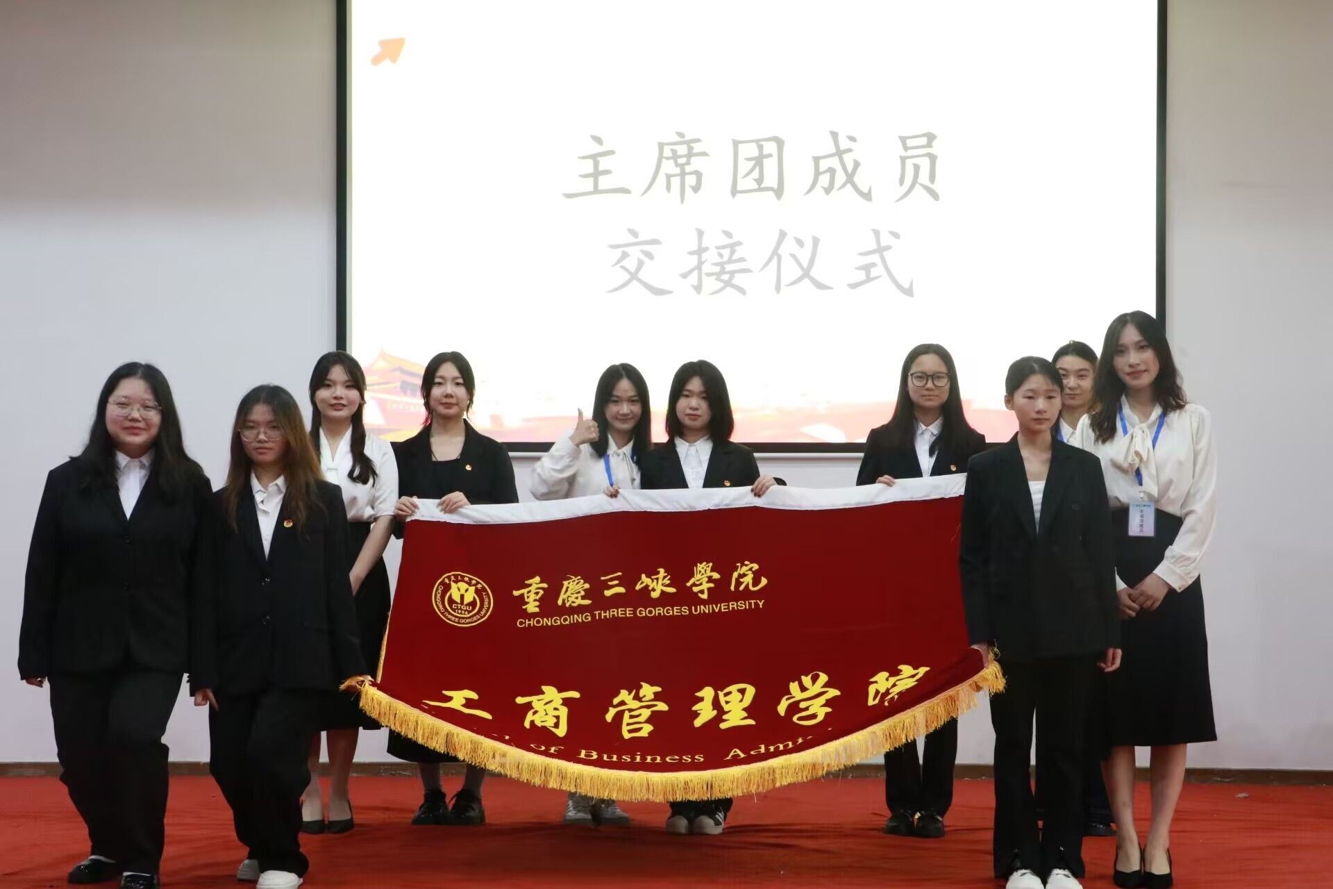 述职评议会第一项议程,由团总支员工会主席团成员和员工团体联合会主席进行述职。团总支(员工)副书记向鑫芸、主席团成员李莎莎、员工团体联合会主席朱中媛分别从团队组成、学习情况、工作态度、工作成效四个方面全面梳理本学年工作、总结学年成果并提出了未发发展方向。接着,第二项议程,团总支员工会各部门、员工团体联合会各协会负责人依次上台进行述职。他们围绕岗位职责、系统梳理工作成果、深度剖析经验教训、明确提出了未来的奋斗目标,展现出了各部门协会积极进取的工作风貌。第三项议程,由主席团成员依次颁发优秀部门、优秀负责人、优秀工作人员奖状。最后,第四项议程,颁发主席团聘书、负责人聘书,并完成新一届主席团交接宣誓。仪式尾声,全体成员共同合影留念为此次活动画上了圆满句号。
