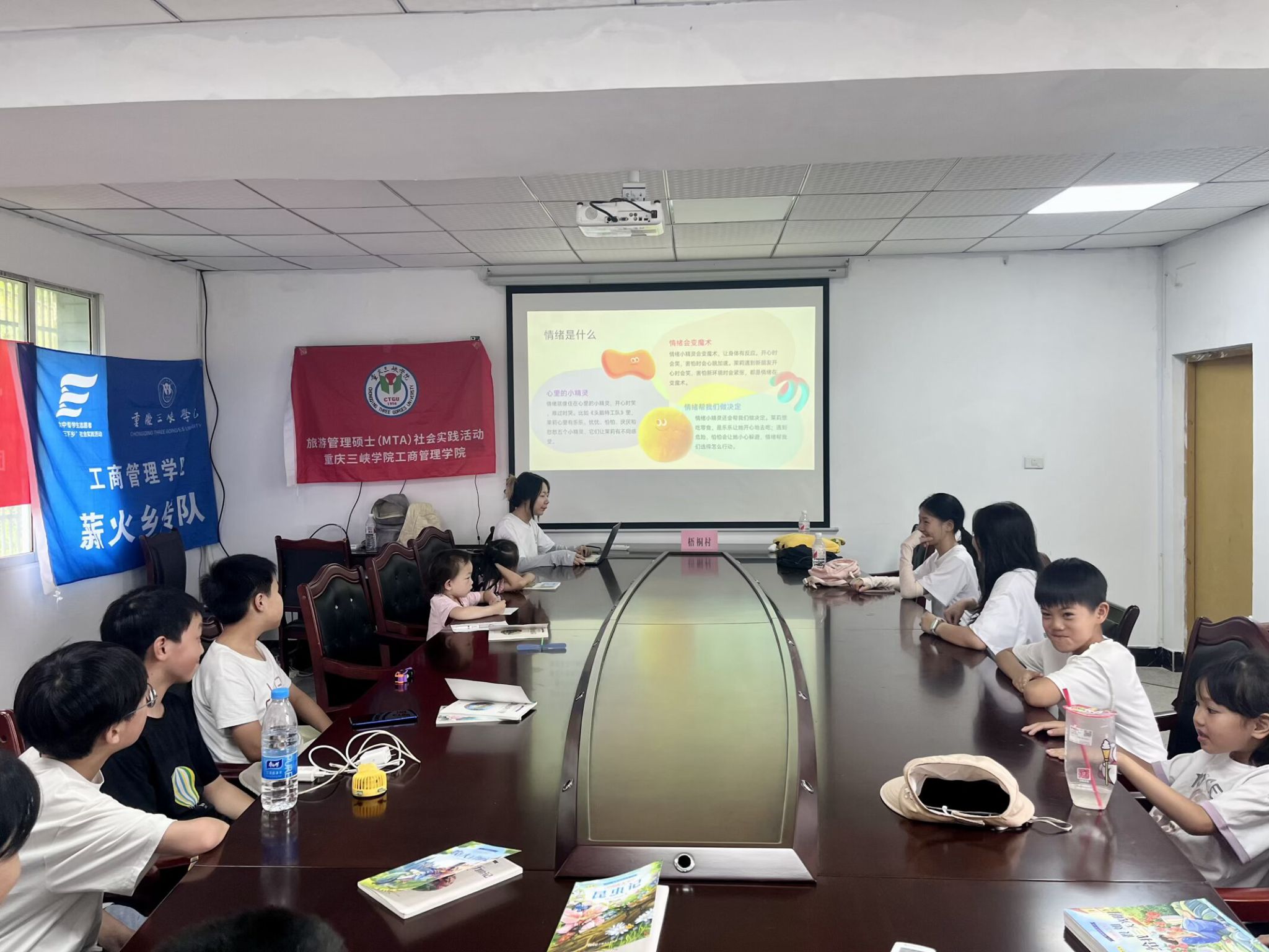 活动尾声,团队向梧桐村儿童赠送精心筛选的《我的情绪小怪兽》《杰瑞的冷静太空》等绘本,搭配定制“心灵成长笔记本”与情绪管理贴纸。“这些书里有和我一样的烦恼!”一名五年级员工捧着图书兴奋地说。此次捐赠不仅实现优质教育资源向乡村的精准输送,更通过“图书+心理工具”的组合,为儿童搭建持续的心灵关怀载体。