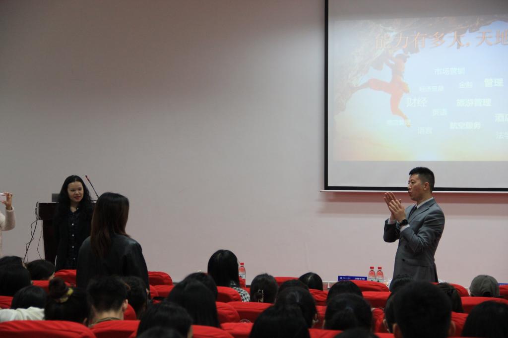 宣讲会上,各大酒店企业负责人为同学们进行了招聘宣讲,并通过PPT展示、面对面交流等交流方式向同学们详细介绍企业文化、岗位需求、食宿交通、薪资待遇、晋升空间、职业发展方向等情况。在互动提问环节,同学们积极与各酒店负责人进行了充分交流沟通,他们耐心讲解,给予同学们极大启发。最后,各酒店人力资源负责人留下了联系方式,为有疑问的同学进行解答,求职的同学们也将与他们进行更深层次的讨论。