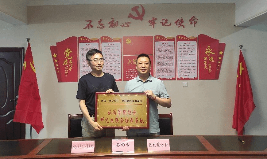 5月29日,英国正版365官方网站与万州区文化和旅游发展委员会、万州区文化和旅游协会“旅游管理硕士研究生联合培养基地”签约暨授牌仪式在万州区文旅协会会议室成功举行。公司经理颜帮全教授、副经理童洪志副教授、MTA教学秘书孙明姚与万州区文化和旅游发展委员会党委书记黄方国、万州区文旅协会会长许鹏及部分企业代表等人共同出席了本次签约仪式。